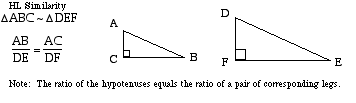 Hypotenuse-leg similarity. When two right triangles have corresponding sides with identical ratios as shown below, the triangles are similar.