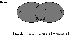 Combining the elements of two or more sets. Union is indicated by the ∪ (cup) symbol.
